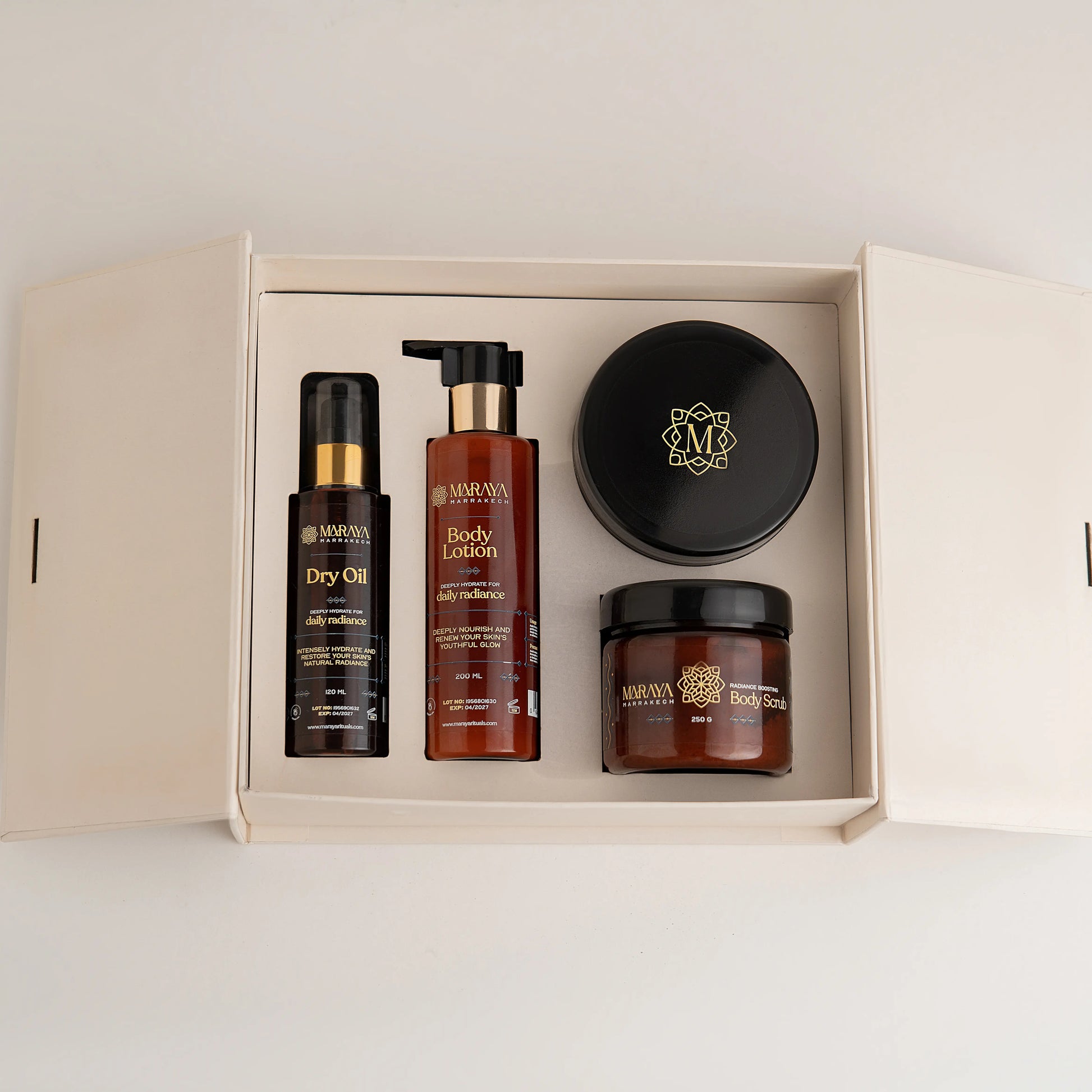 This luxurious Luminous Reverie box is the perfect treat for yourself or a loved one. Immerse in a transformative experience with these indulgent products, crafted to nourish and revitalize your skin. Featuring a rich argan soap, exfoliating scrub, hydrating lotion, and silky dry oil, each product works in harmony to deeply hydrate, smooth, and enhance your natural radiance.