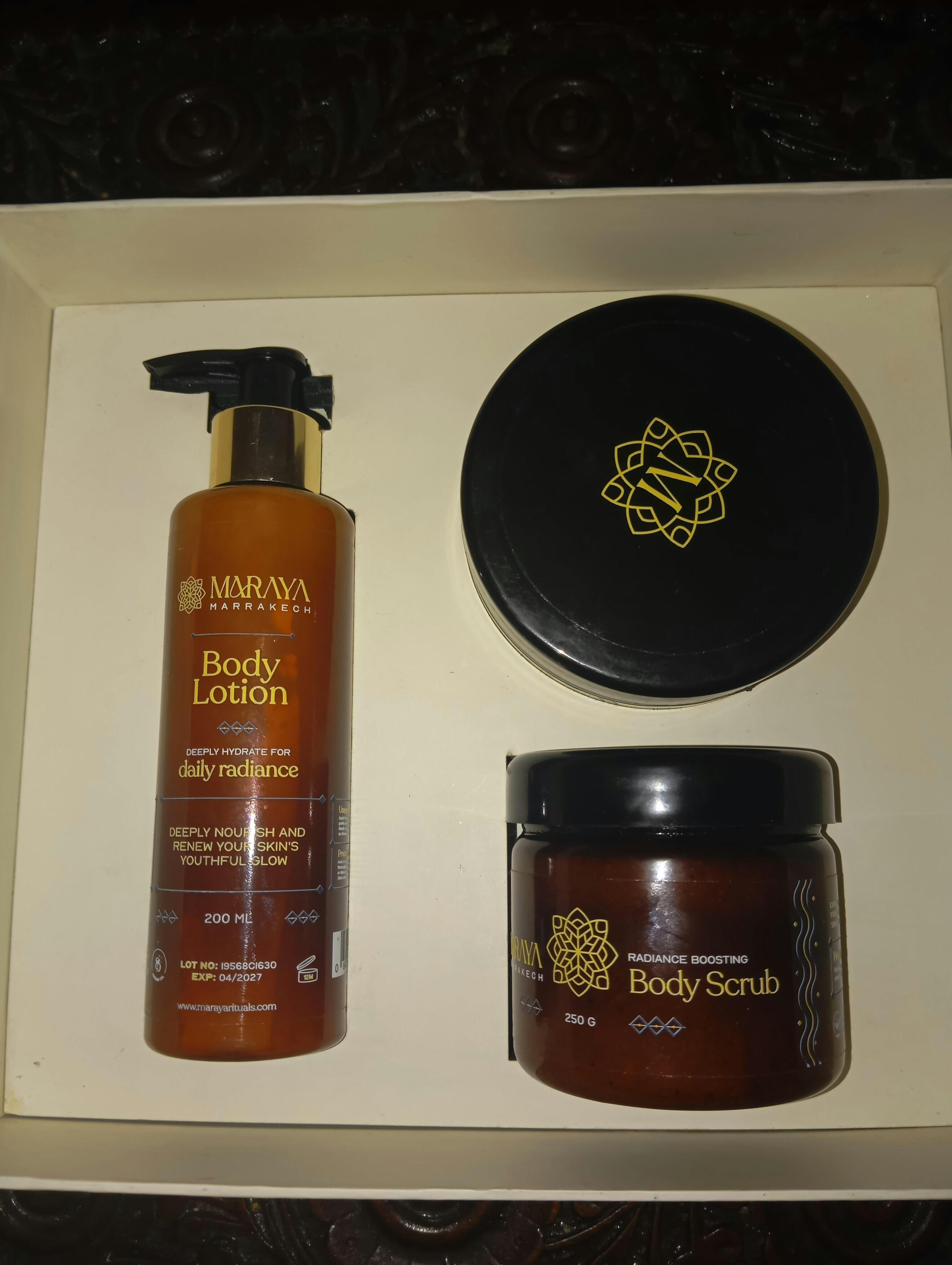This wonderful gift box is the perfect present for a friend or family member or for treating yourself! Unveil the magic of the Enchanted Glow Ritual box, where the luxurious black soap, exfoliating scrub, and hydrating lotion transport you to a world of indulgence. This exquisite collection cleanses, smooths, and nourishes your skin, leaving it refreshed, soft, and glowing.